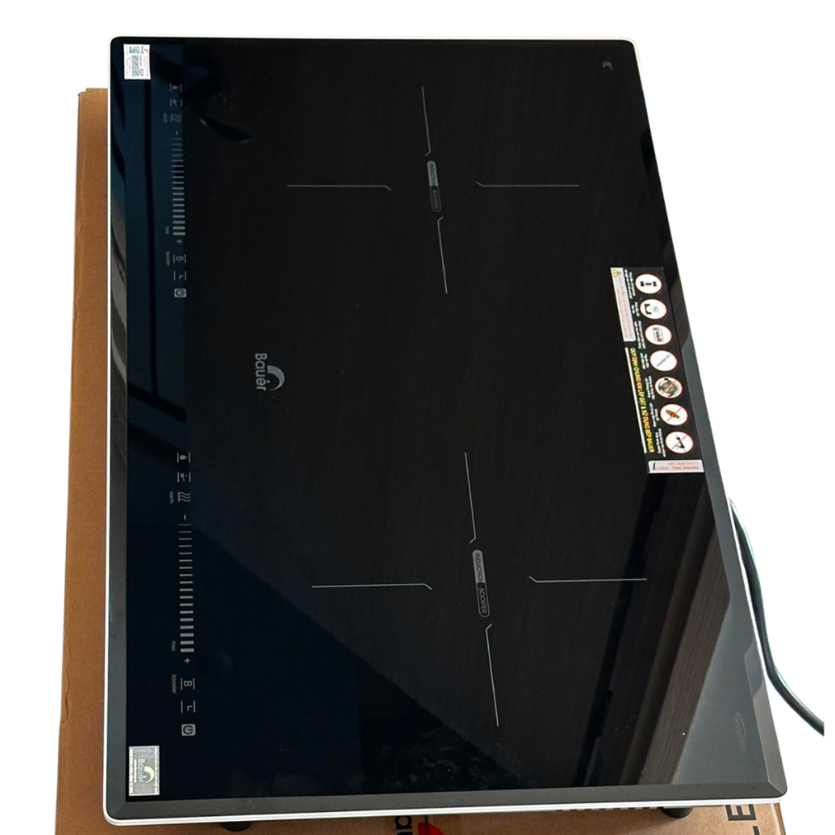 Bauer BE2060ID Plus sử dụng mặt kính Vitroceramic hoặc K+ (tùy lô sản xuất) với khả năng chịu nhiệt lên đến 1000°C và chịu sốc nhiệt cực tốt. Mặt kính đen sáng bóng, vát cạnh tinh tế không chỉ tăng độ thẩm mỹ mà còn giúp việc vệ sinh các vết dầu mỡ, thức ăn trở nên cực kỳ đơn giản.