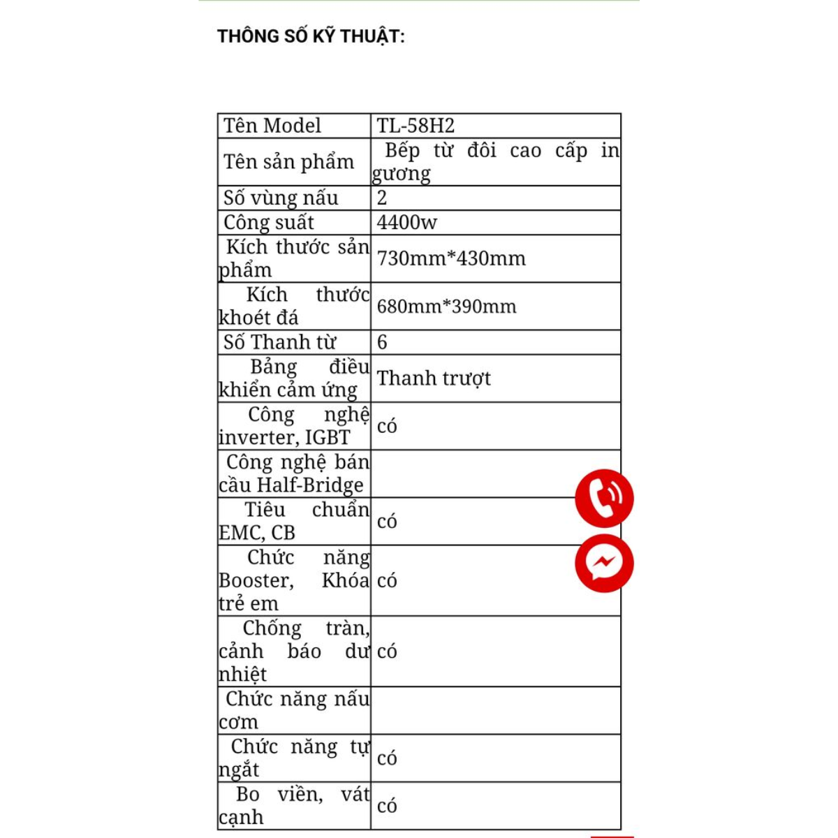 Bếp Từ Đôi In Gương TL-58H2 | 4400W Inverter