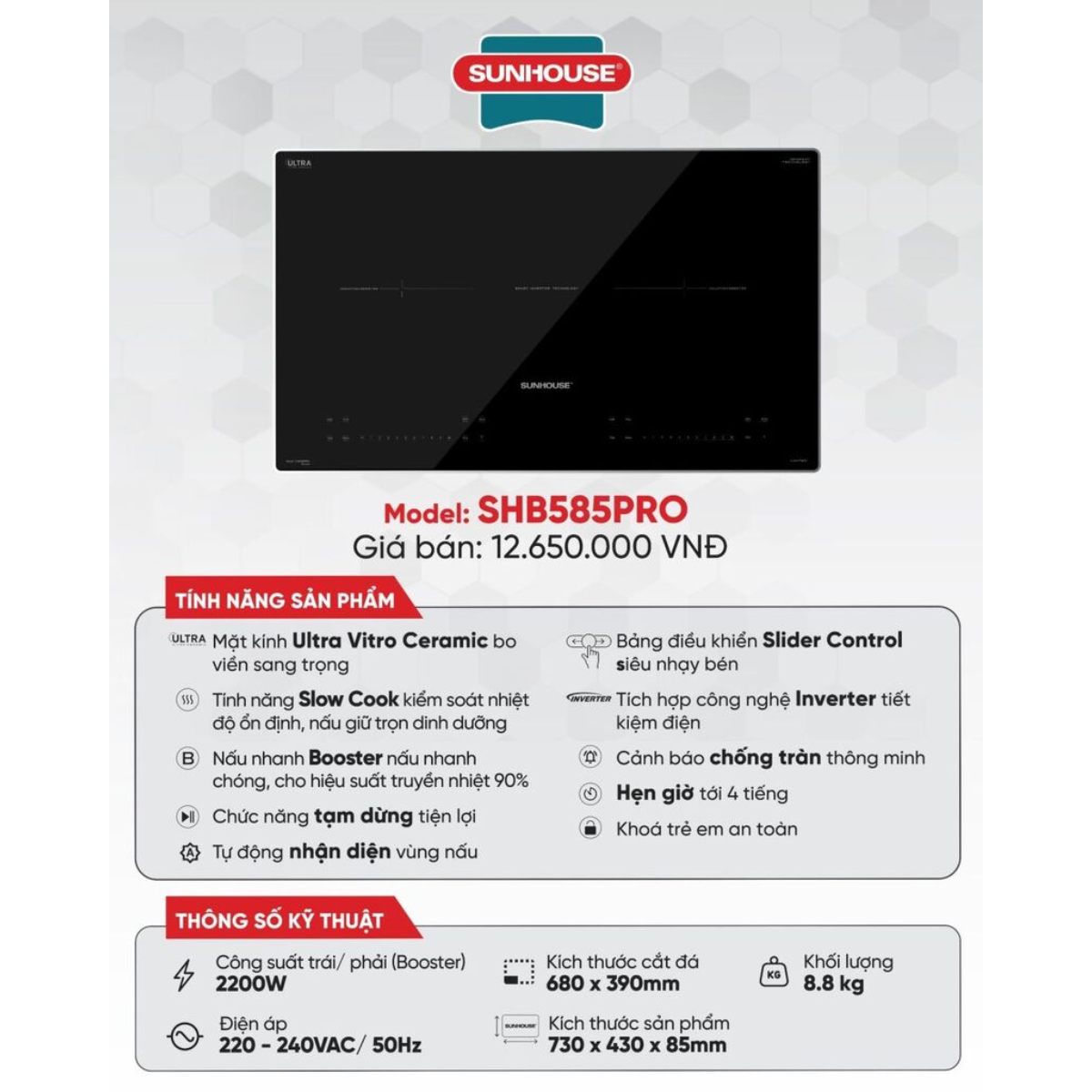 Bếp Từ Đôi Sunhouse SHB585PRO | Mặt Kính Cao Cấp 3600W Inverter