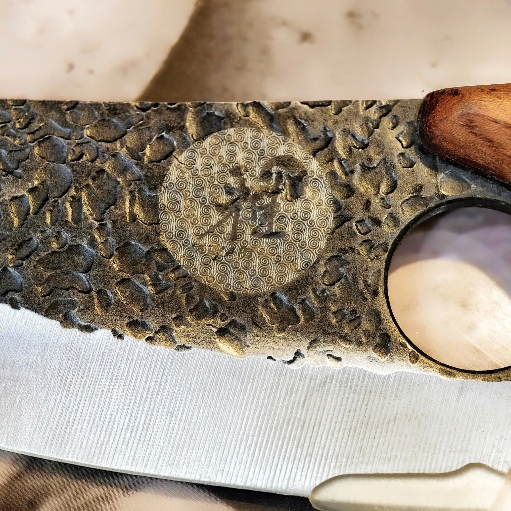 - Thiết kế hoa văn dập nổi tinh tế: Các họa tiết trên bề mặt lưỡi dao không chỉ tạo vẻ thẩm mỹ sang trọng, đậm chất nghệ thuật Nhật Bản mà còn giúp giảm ma sát khi cắt thái.