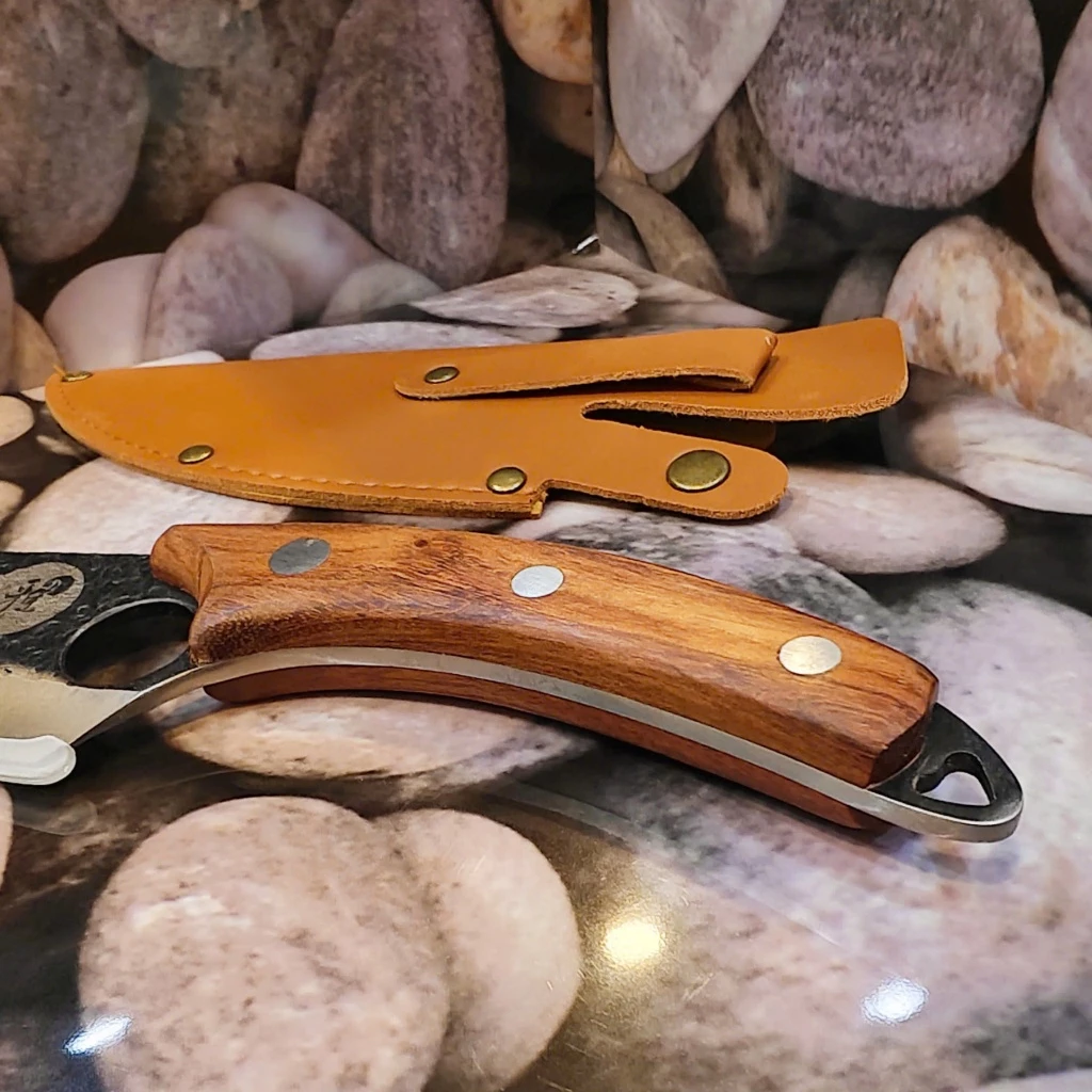 - Tặng kèm bao da bảo vệ: Mỗi sản phẩm đi kèm một bao da thủ công cao cấp, có chốt gài an toàn, giúp bạn dễ dàng mang theo bên mình hoặc cất giữ trong balo dã ngoại mà không lo gây nguy hiểm.