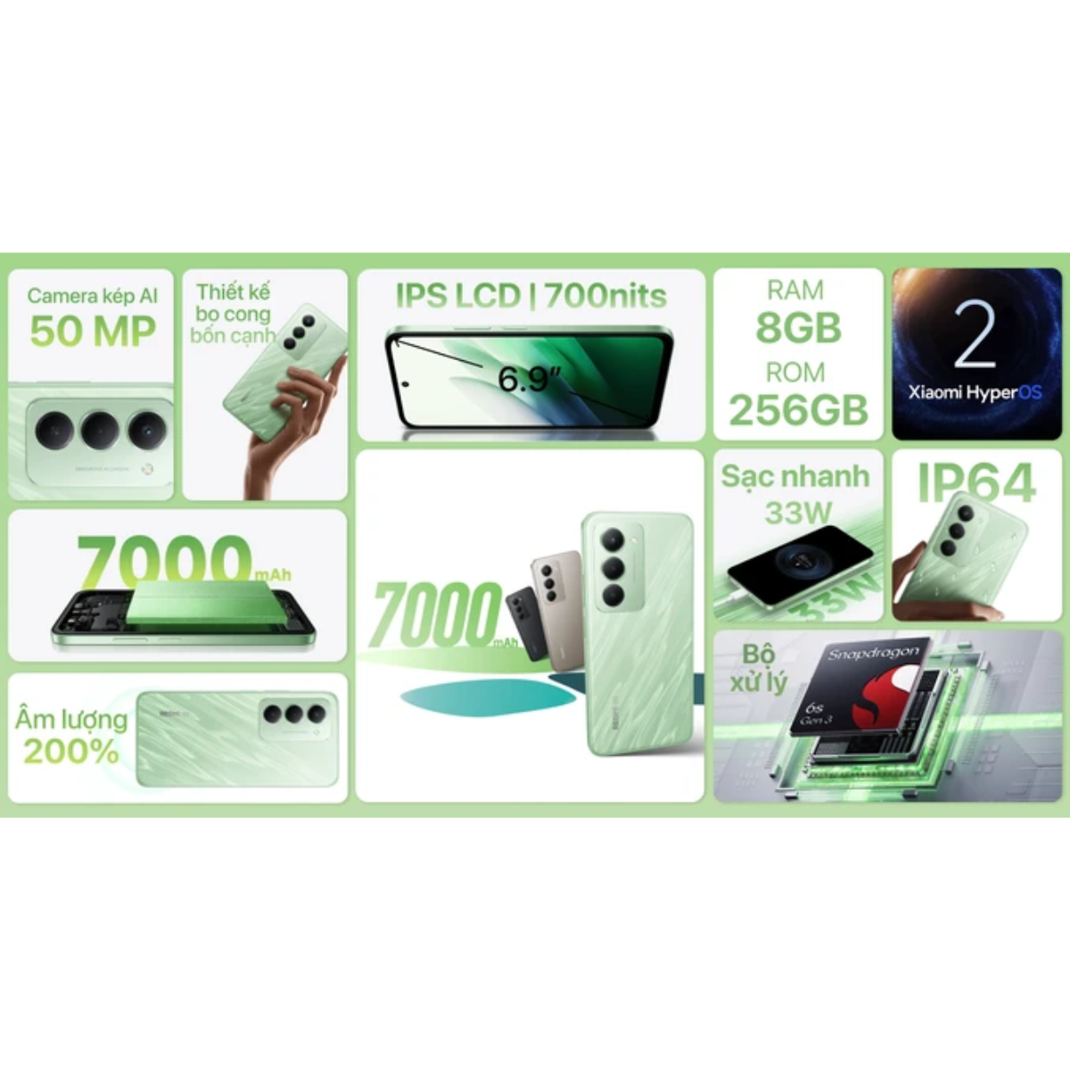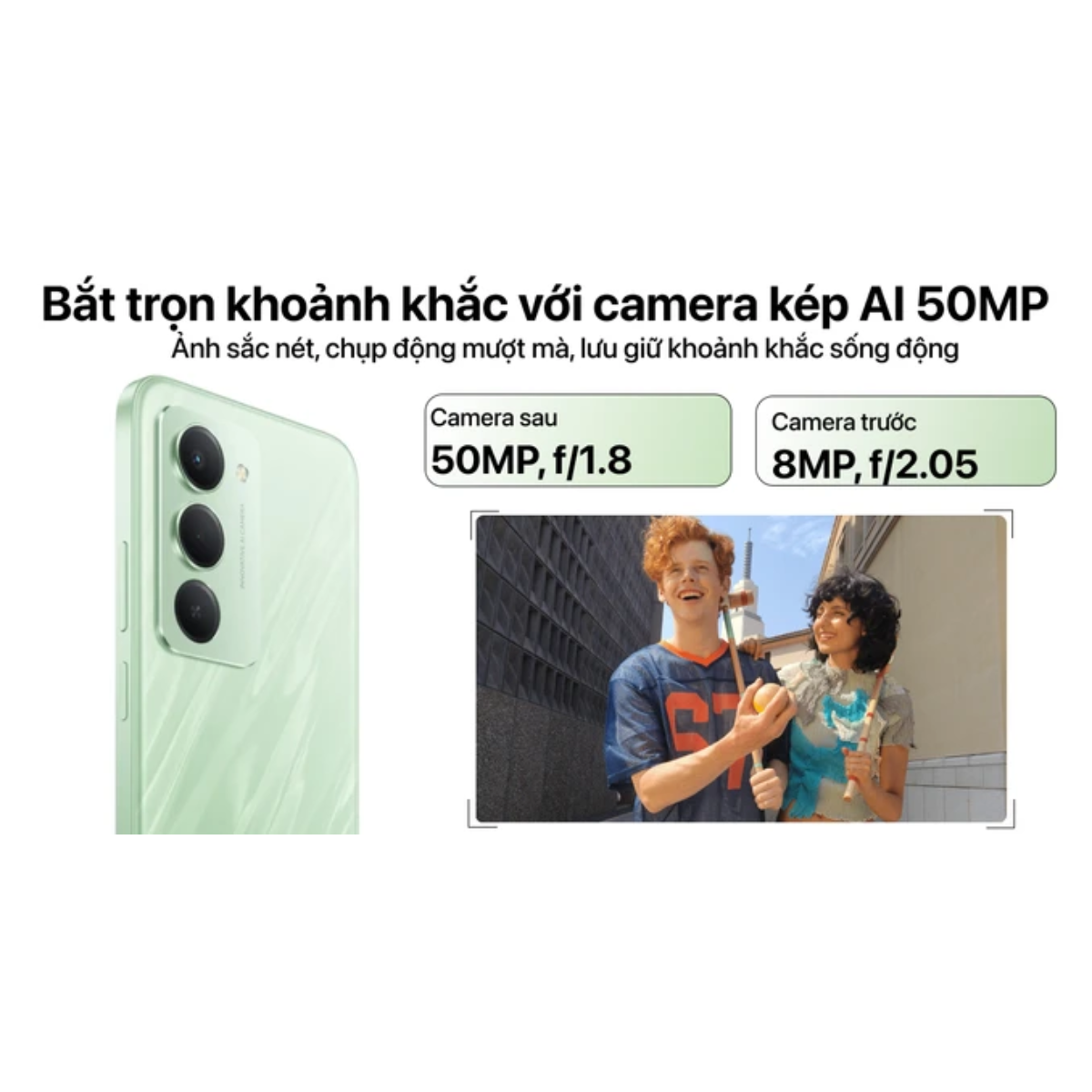 • Camera: Hệ thống AI 50MP sắc nét, bắt trọn khoảnh khắc.