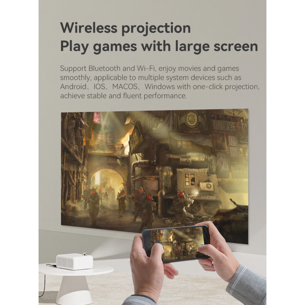 1. Thiết kế siêu nhỏ gọn, tính di động cao Sở hữu ngoại hình tinh tế với trọng lượng chỉ khoảng 600g, Wanbo Mini Pro cực kỳ dễ dàng để mang theo trong các chuyến du lịch hoặc di chuyển giữa các phòng trong nhà. Dù nhỏ gọn, máy vẫn có khả năng phóng đại màn hình lớn, biến bất kỳ bức tường trắng nào thành rạp chiếu phim cá nhân.