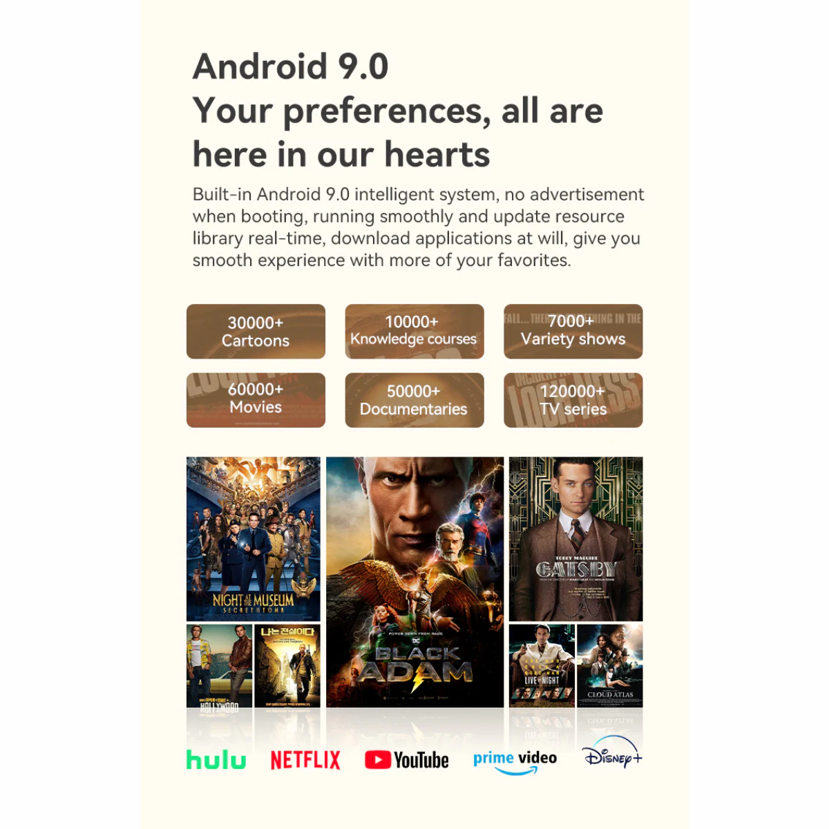 3. Hệ điều hành Android 9.0 thông minh Điểm khác biệt lớn nhất của phiên bản Pro là việc tích hợp sẵn hệ điều hành Android. Người dùng có thể trực tiếp truy cập và xem các ứng dụng phổ biến như YouTube, Netflix ngay trên máy chiếu mà không cần thông qua thiết bị truyền phát trung gian, mang lại sự tiện lợi tối đa.