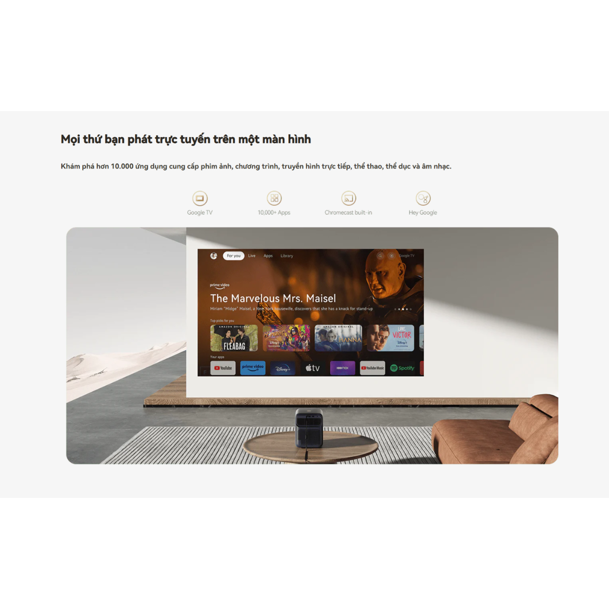 3. Hệ điều hành Android TV 11 & Netflix bản quyền Khác với các dòng máy chiếu phổ thông, Mozart 1 Pro chạy hệ điều hành Android TV 11 chính thức từ Google. Điều này cho phép bạn xem Netflix, YouTube, Disney+ ở độ phân giải cao nhất một cách ổn định, hỗ trợ tìm kiếm giọng nói qua trợ lý ảo Google Assistant và kho ứng dụng Play Store khổng lồ.