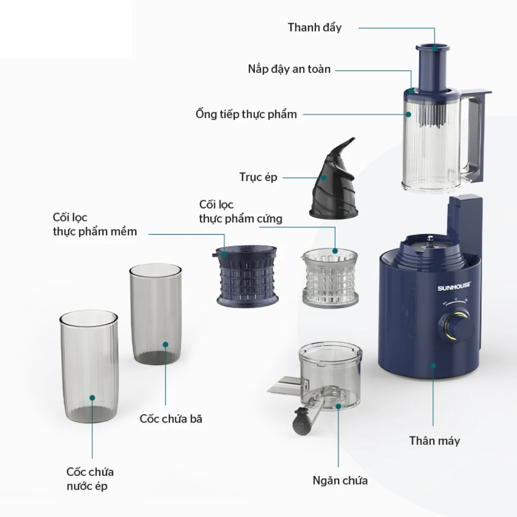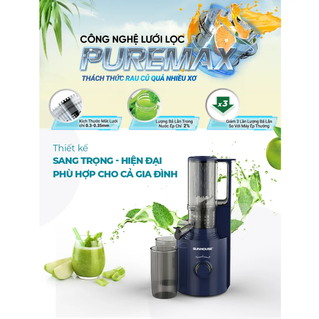 Máy Ép Chậm Sunhouse SHD5512 | Công Suất 250W Ép Kiệt Bã