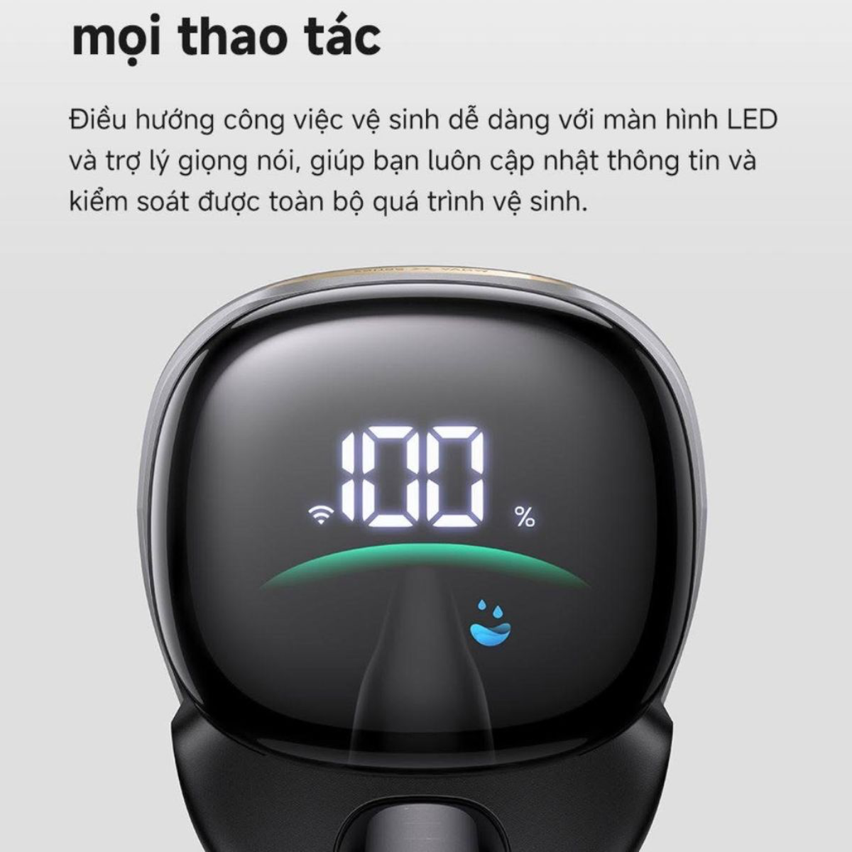 • Cảnh báo thông minh: Trợ lý giọng nói sẽ nhắc nhở bạn khi cần thêm nước sạch, đổ nước thải hoặc khi máy hoàn thành chu trình tự làm sạch.