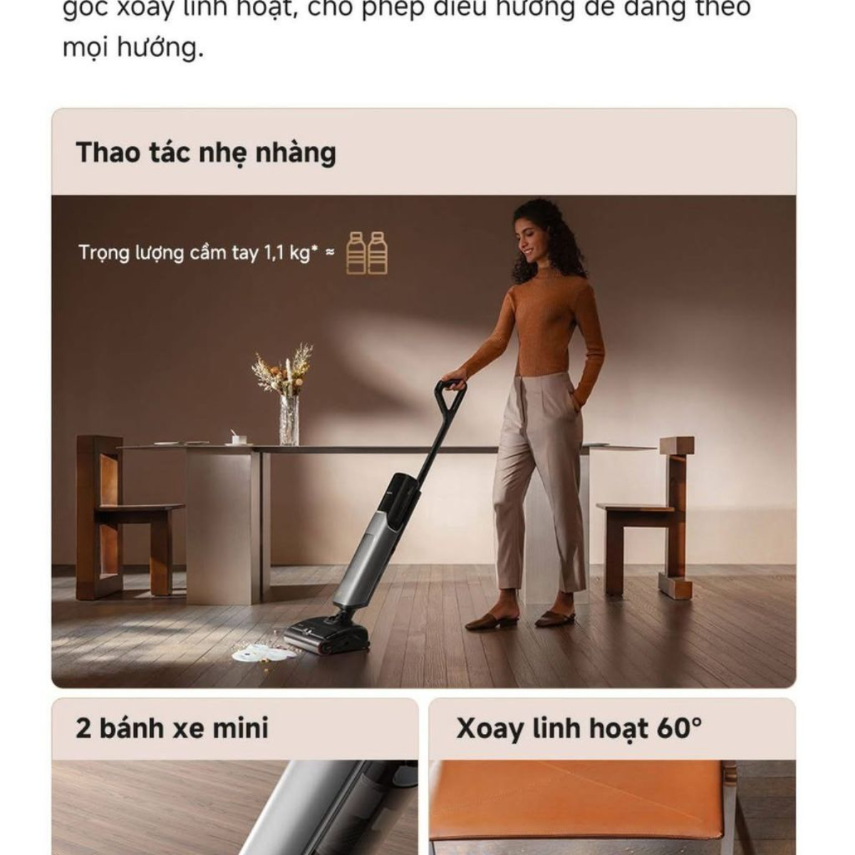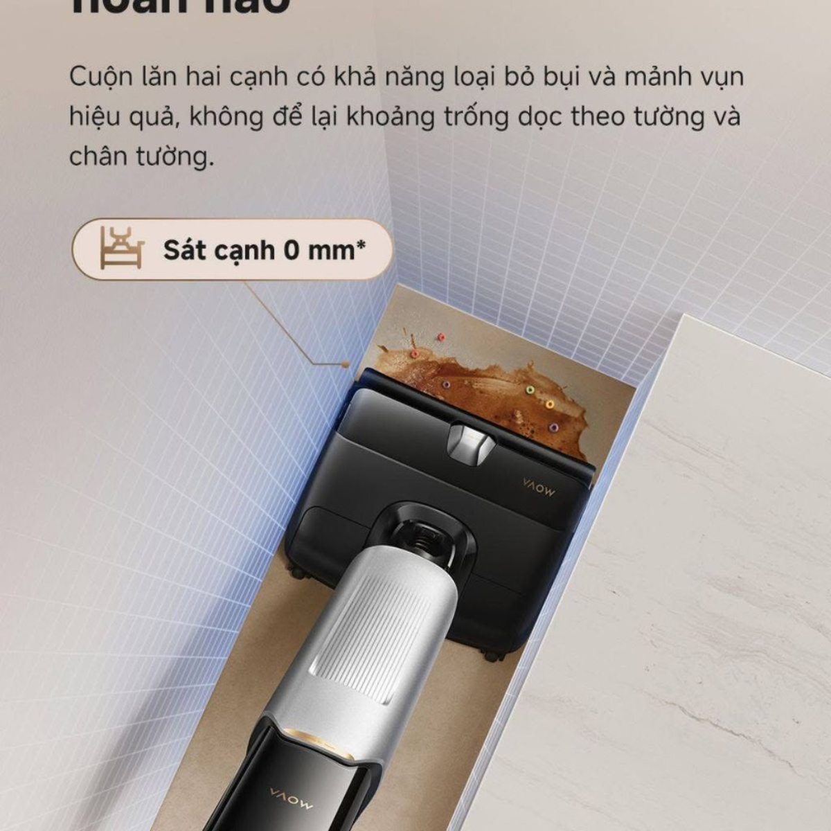 Hút và Lau 2-trong-1 với lực hút cực mạnh Sở hữu động cơ không chổi than thế hệ mới, máy tạo ra lực hút ấn tượng, dễ dàng xử lý mọi loại rác thải từ bụi mịn, tóc, lông thú cưng cho đến các chất lỏng đổ trên sàn. Hệ thống chổi lăn tràn viền giúp máy làm sạch sát mép tường, không bỏ sót bất kỳ góc chết nào trong ngôi nhà.