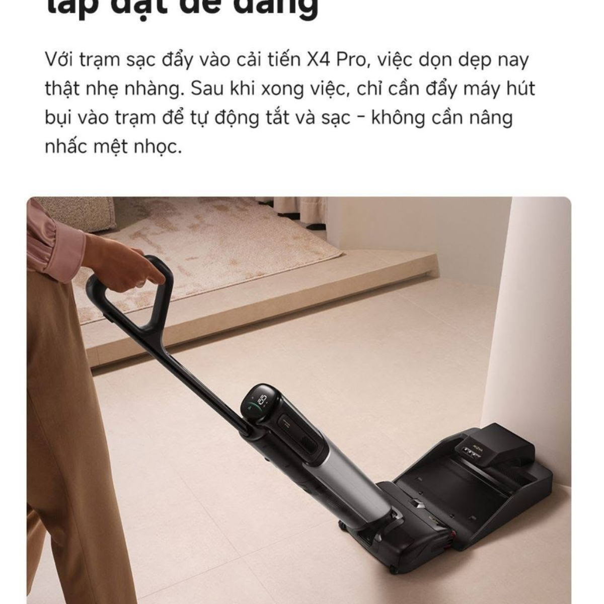 • Tương tác trực quan: Màn hình LED hiển thị thời gian thực về dung lượng pin, chế độ làm sạch và độ bẩn của sàn nhà.