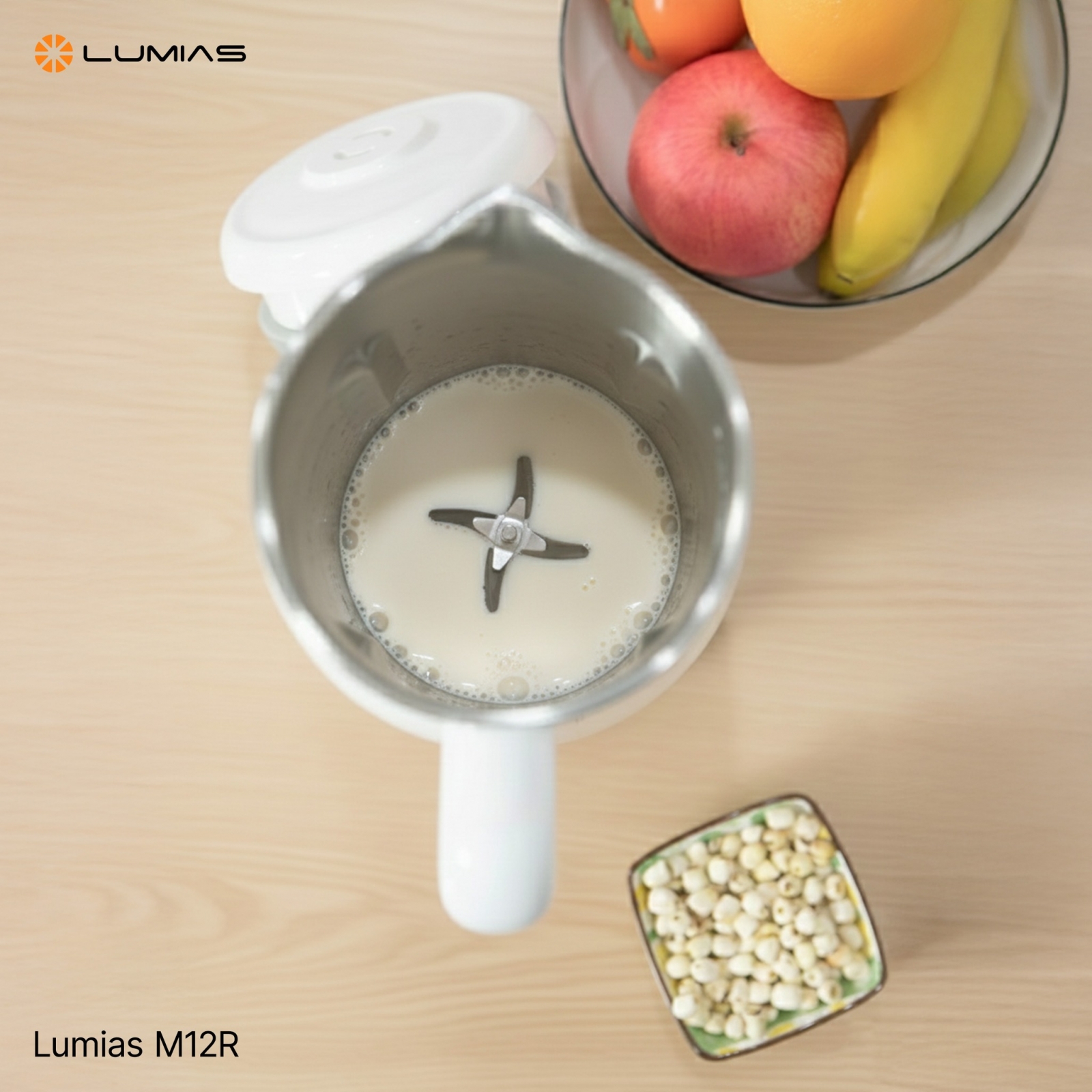 1. Công nghệ xay nấu đỉnh cao Lumias M12R sở hữu động cơ công suất cao kết hợp cùng lưỡi dao đa chiều bằng thép chống gỉ. Công nghệ này giúp xay nhuyễn mịn mọi loại hạt cứng như hạnh nhân, đậu nành, hạt óc chó mà không cần lọc lại qua rây, giữ trọn vẹn chất xơ và dinh dưỡng.