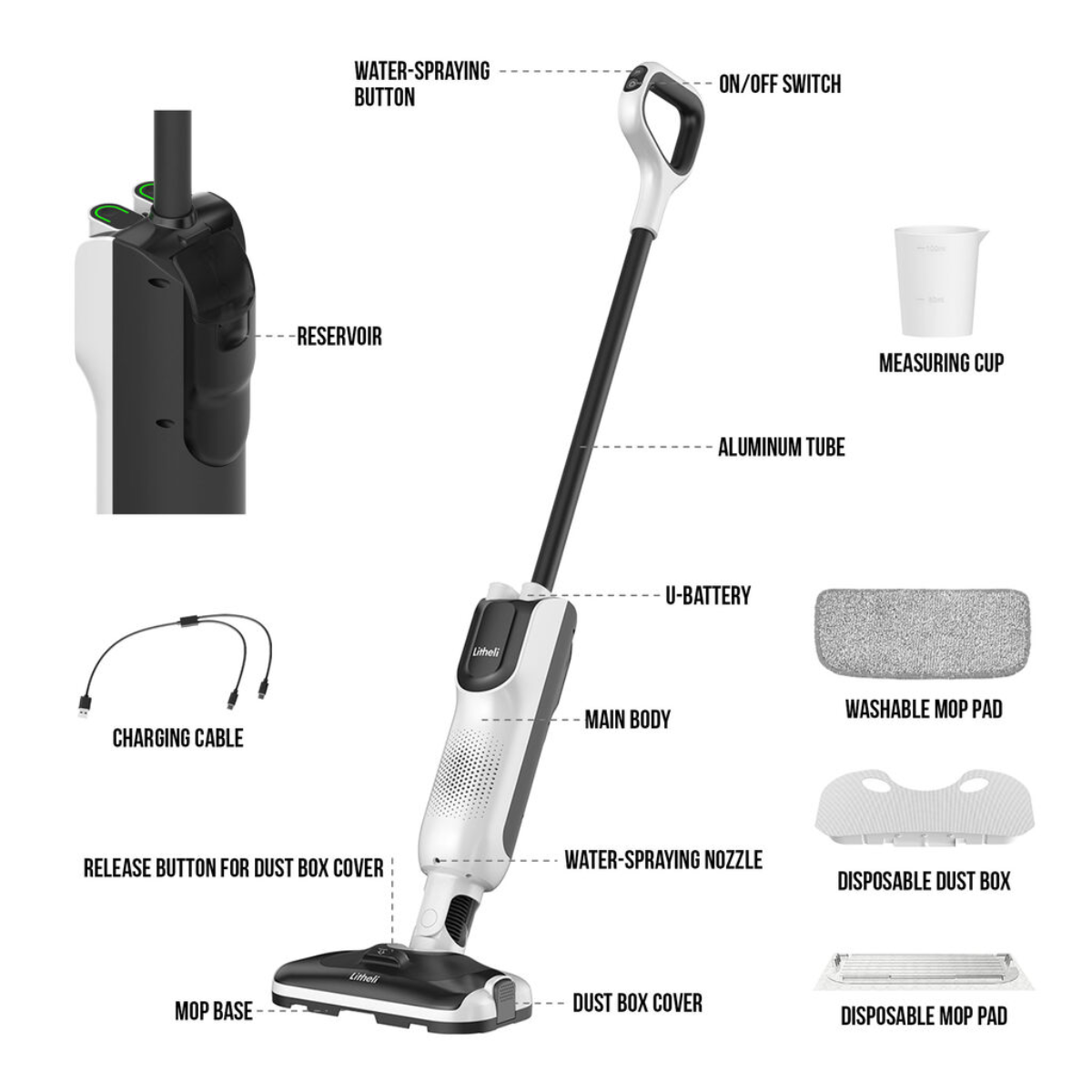 Máy Lau Nhà Và Hút Bụi 2 Trong 1 Litheli (2 Pin Rời - Model: L0100203-001)