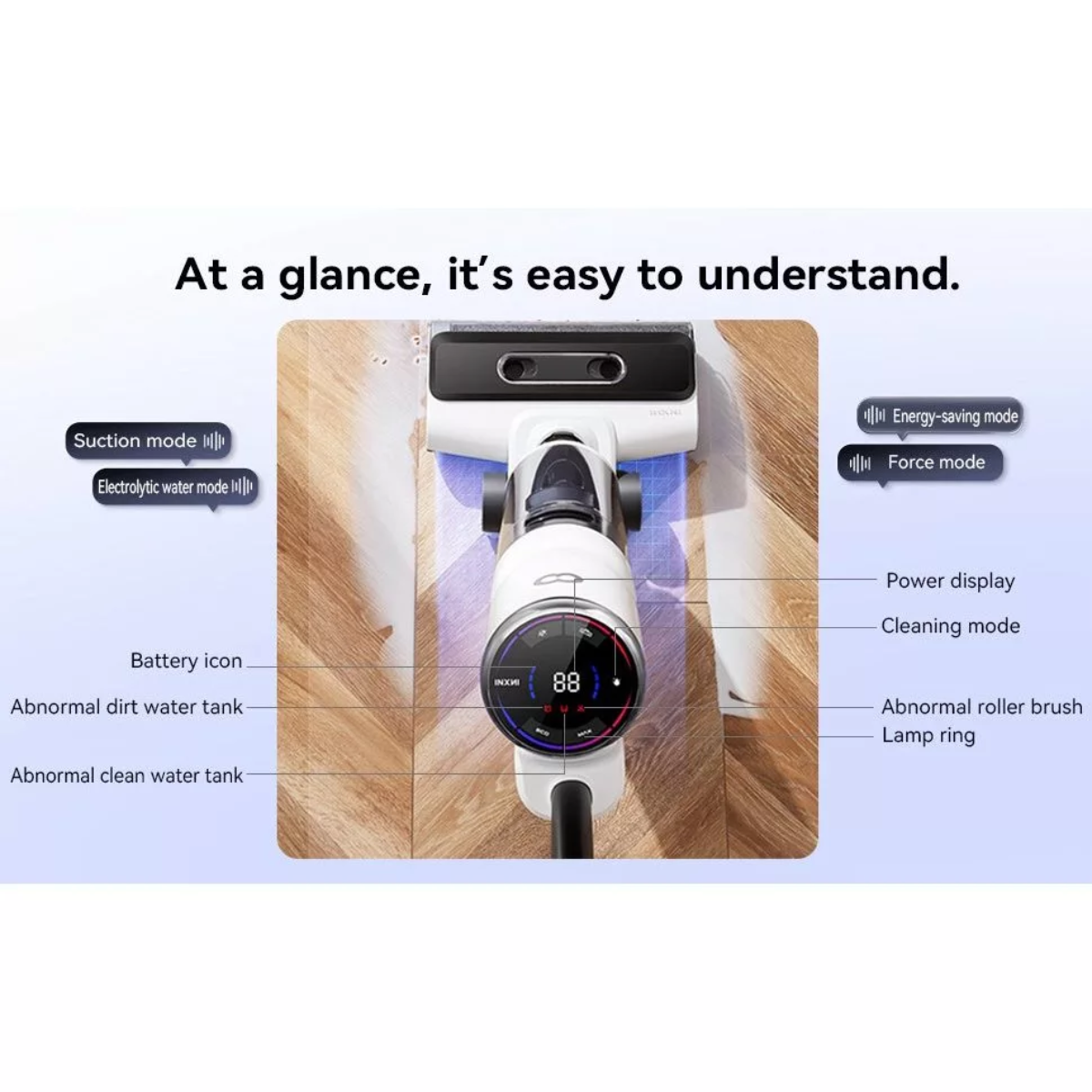 Làm sạch 2-trong-1: Hút và Lau đồng thời INXNI Z3 Slim xử lý hiệu quả mọi loại vết bẩn trên sàn nhà, từ bụi mịn, tóc, lông thú cưng cho đến các vết bẩn ướt cứng đầu. Hệ thống chổi lăn tốc độ cao kết hợp với lực hút mạnh mẽ giúp sàn nhà khô nhanh chóng, không để lại vệt nước hay cảm giác trơn trượt.