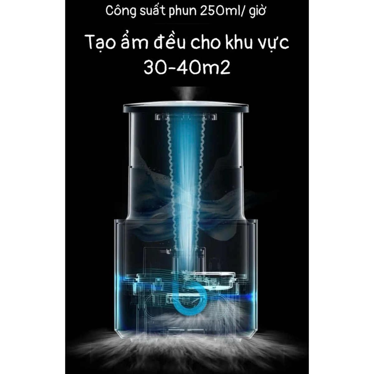 • Công suất phun sương mạnh mẽ: Dù có thiết kế nhỏ gọn, máy vẫn đảm bảo lưu lượng phun sương ổn định, giúp cân bằng độ ẩm nhanh chóng cho phòng ngủ, bàn làm việc hoặc không gian cá nhân.