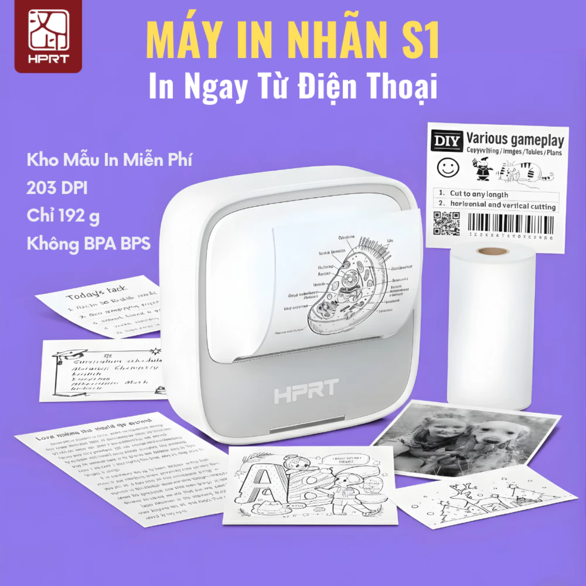 Máy Tạo Nhãn HPRT S1 | In Nhãn Nhiệt Cầm Tay, Kết Nối Bluetooth, Dùng Cho Gia Đình, Kinh Doanh, Học Sinh & Sinh Viên