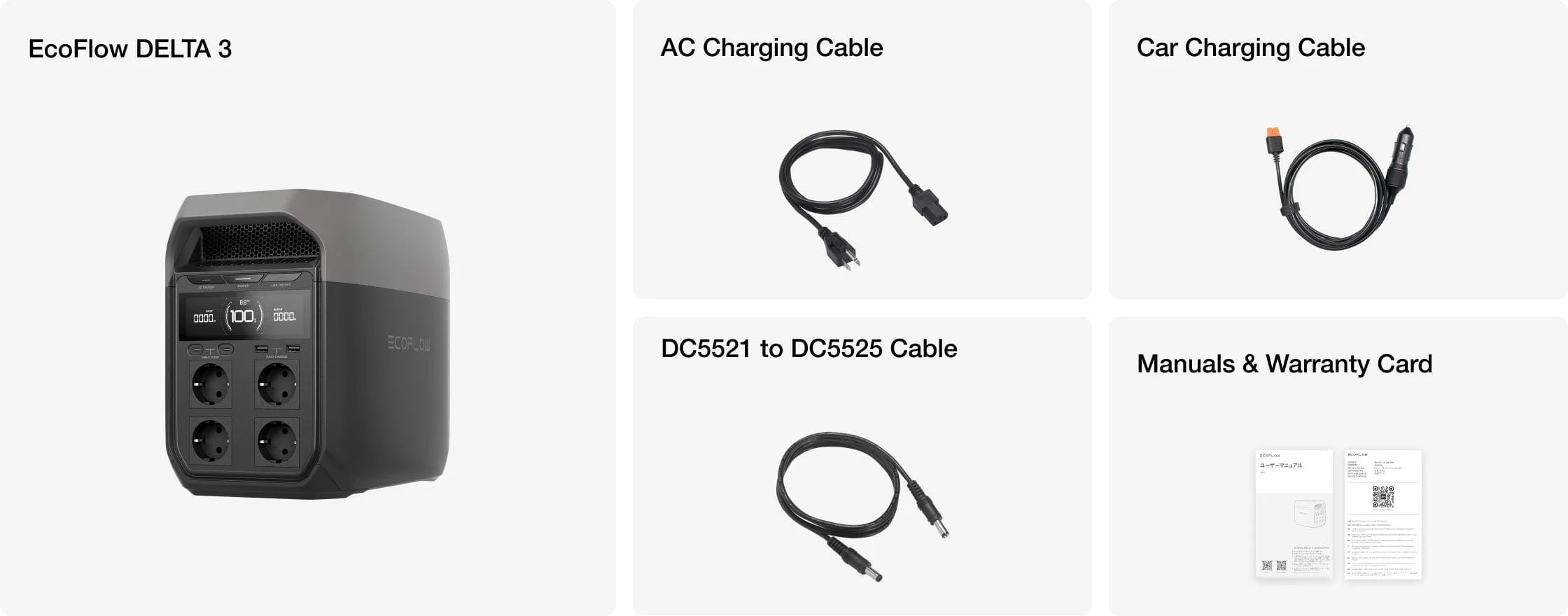 Bạn có thể sạc lại DELTA 3 thông qua tấm pin năng lượng mặt trời (Solar Panels). Đây là lựa chọn lý tưởng cho lối sống bền vững và dự phòng trong các trường hợp mất điện kéo dài.