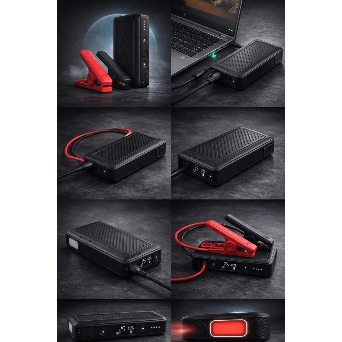 • Tính năng: Kích bình ắc quy ô tô, xe máy; Đèn LED SOS; Màn hình LCD.