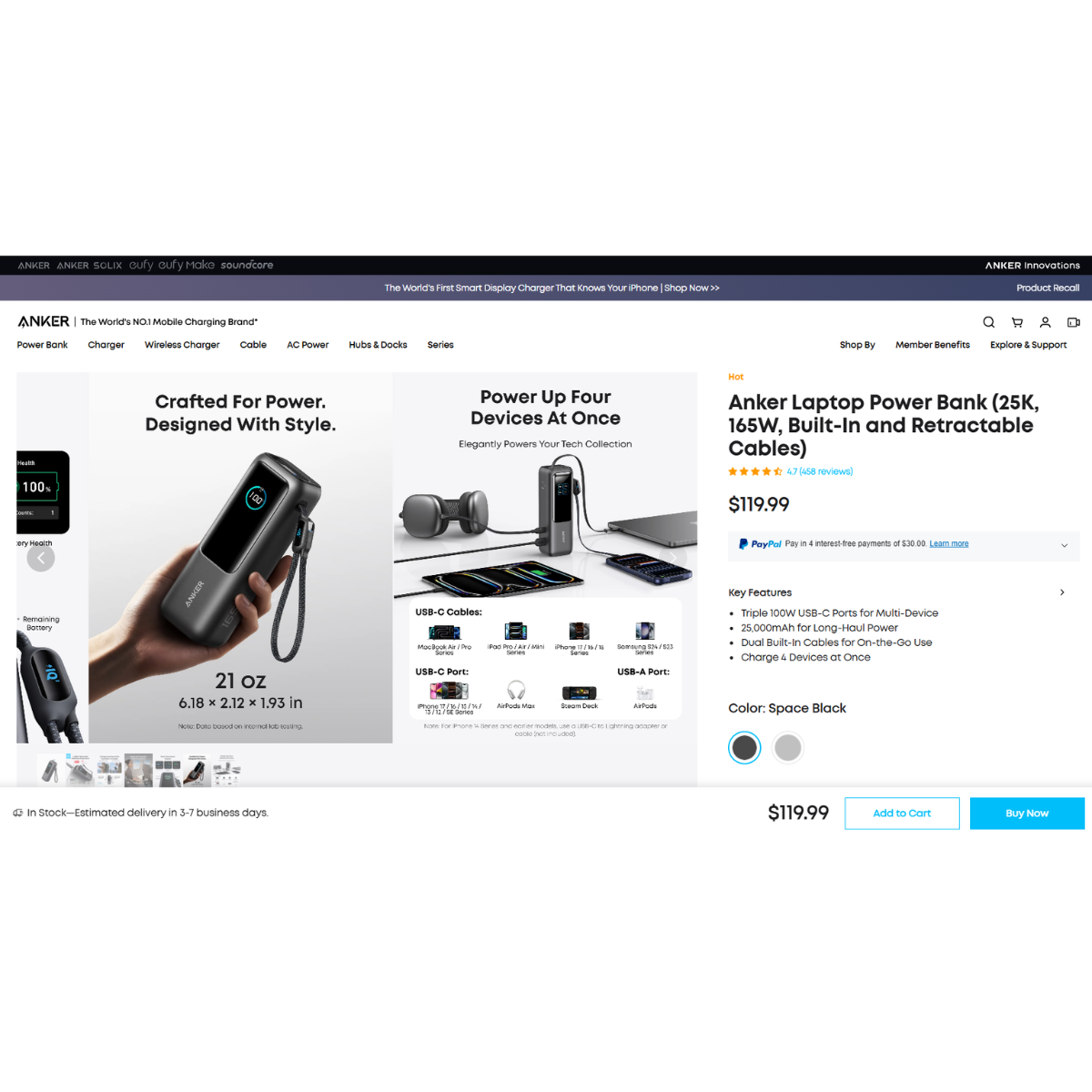 Anker tích hợp hệ thống bảo vệ ActiveShield 2.0 tiên tiến, giúp giám sát nhiệt độ hơn 3 triệu lần mỗi ngày. Điều này đảm bảo pin luôn hoạt động mát mẻ, ngăn chặn quá tải, quá dòng và bảo vệ tuyệt đối cho các thiết bị đắt tiền của bạn.