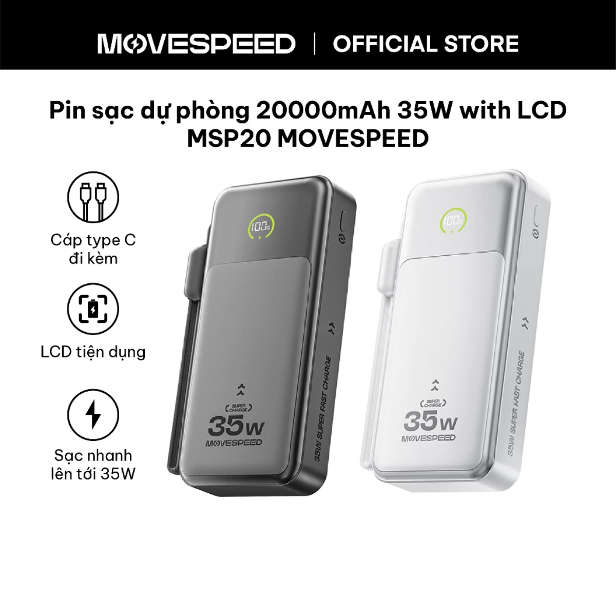 Pin Sạc Dự Phòng MOVESPEED MSP20 SuperVOOC | 20000mAh Lõi Pin LiFePO4 Siêu Bền, Chống Cháy Nổ