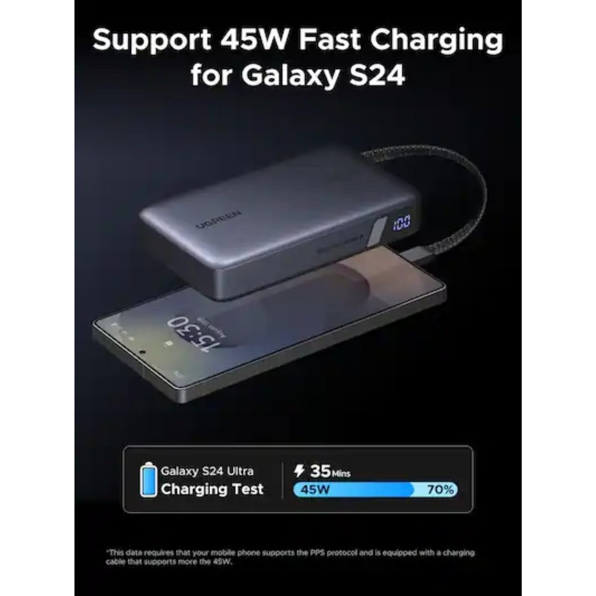 Với đầu ra tối đa 67W qua cổng USB-C, UGREEN PB550 có khả năng sạc đầy 50% pin cho MacBook Air M2 chỉ trong khoảng 30 phút. Đây là phụ kiện lý tưởng cho những người thường xuyên làm việc di động, cần nguồn năng lượng ổn định và nhanh chóng cho Laptop văn phòng.