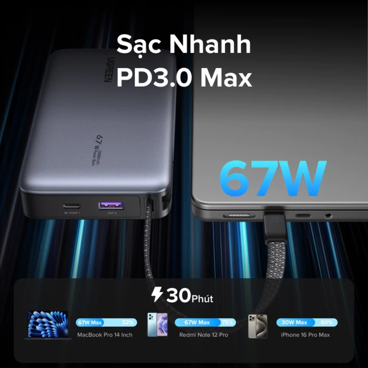 Pin Sạc Dự Phòng UGREEN PB550 67W 20000mAh | Sạc Nhanh Laptop, Hỗ Trợ Xiaomi PPS 5A & UFCS