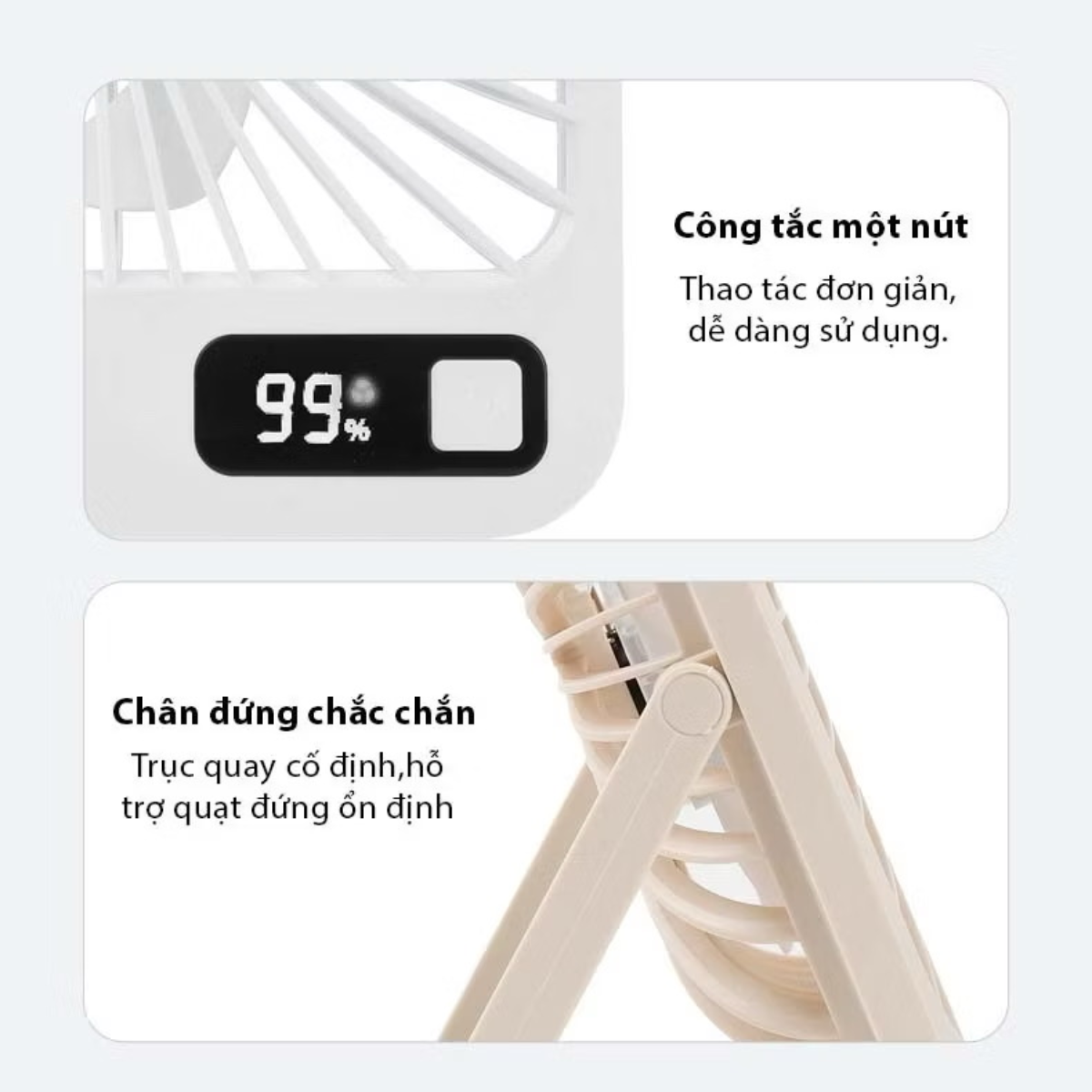 Sản phẩm là giải pháp làm mát cá nhân hoàn hảo cho không gian làm việc, học tập hoặc mang theo trong những chuyến đi. Với thiết kế tinh tế và khả năng tích điện linh hoạt, chiếc quạt này giúp bạn xua tan cái nóng oi ả một cách nhanh chóng mà không phụ thuộc vào nguồn điện trực tiếp.