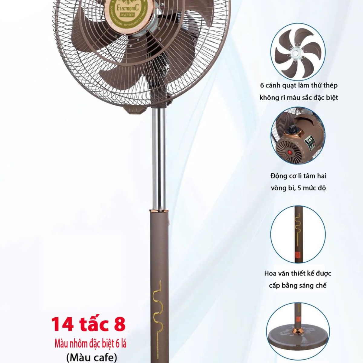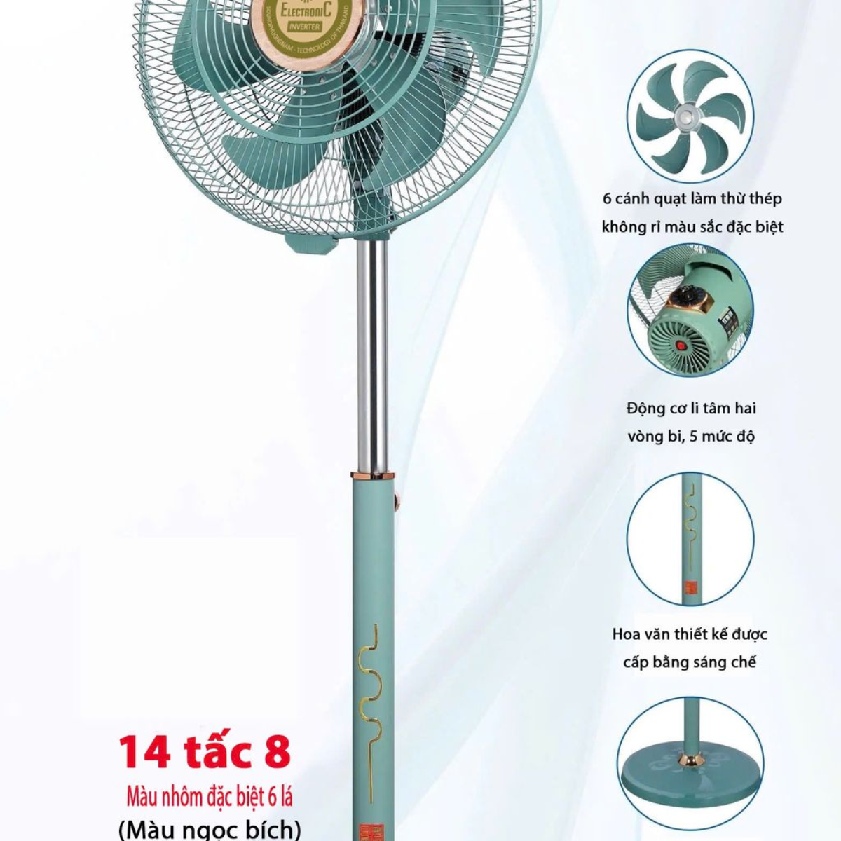 Thay đổi chiều cao: Thân quạt có thể điều chỉnh độ cao từ 1.1m đến 1.4m, phù hợp với nhiều vị trí sử dụng từ ngồi bàn làm việc đến đứng điều hành sản xuất.