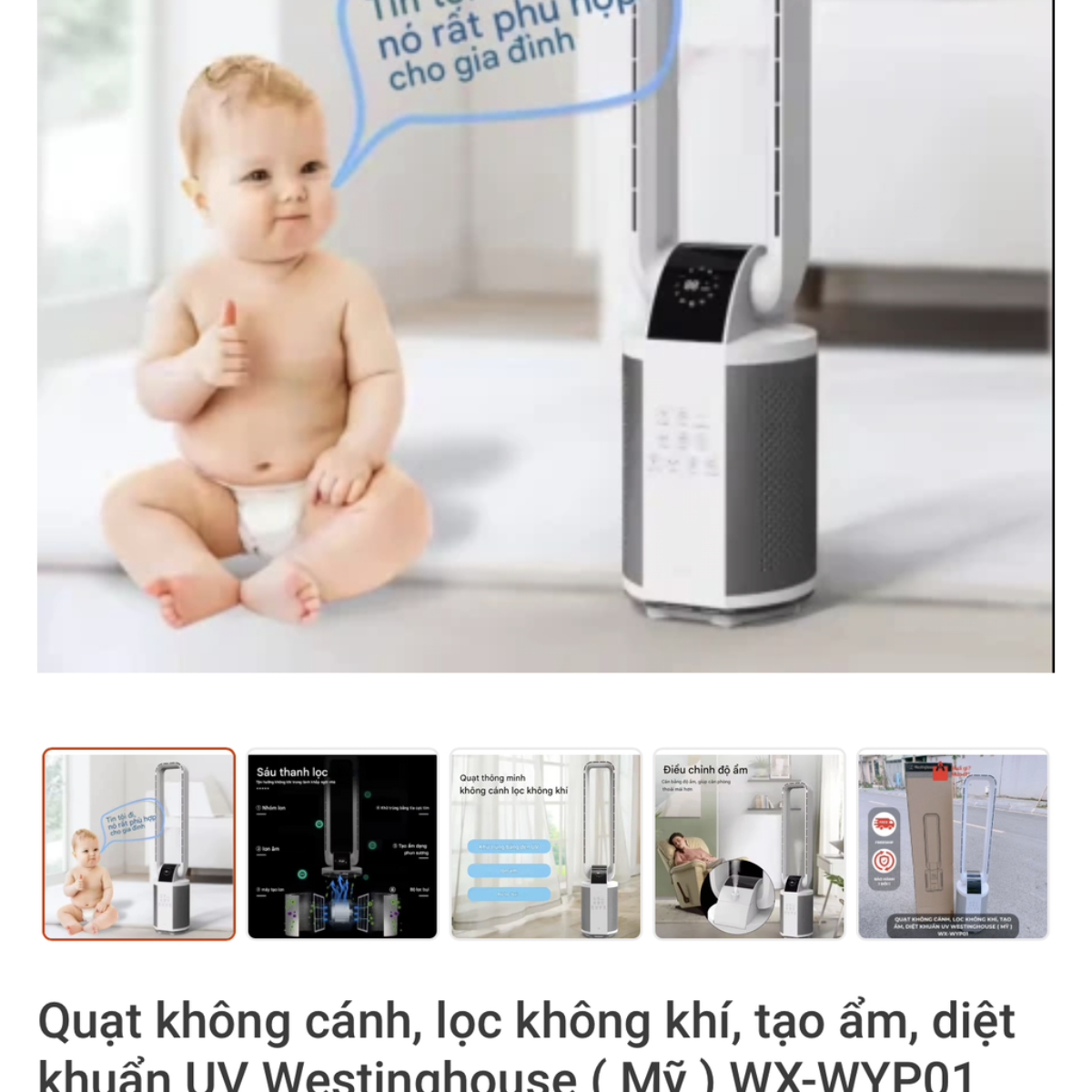 Quạt không cánh Westinghouse WX-WYP01 là giải pháp chăm sóc sức khỏe toàn diện cho gia đình với sự kết hợp 4 trong 1: Làm mát, lọc không khí bằng ion âm, tạo ẩm chống khô da và diệt khuẩn bằng tia UV. Với thiết kế không cánh an toàn tuyệt đối cho trẻ nhỏ và động cơ 35W siêu tiết kiệm điện, đây là thiết bị gia dụng không thể thiếu cho không gian sống hiện đại.