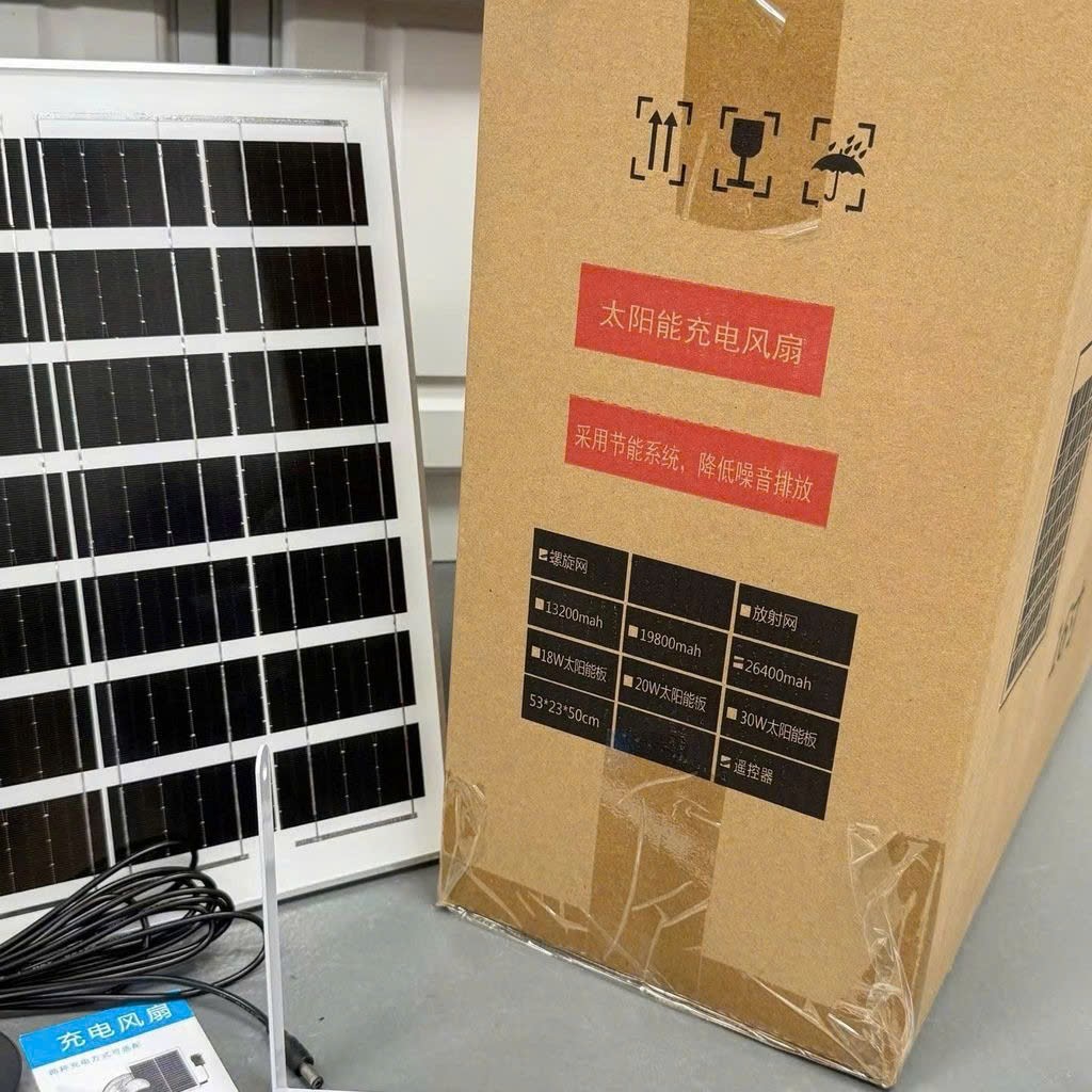 Bộ sản phẩm đi kèm tấm pin năng lượng mặt trời với dây dẫn dài (thường từ 3-5m), cho phép bạn đặt tấm pin ngoài trời và quạt trong nhà. Đây là giải pháp tiết kiệm điện 100% và cực kỳ hữu dụng trong các tình huống thiên tai, mất điện kéo dài hoặc sử dụng tại các khu vực chưa có lưới điện.