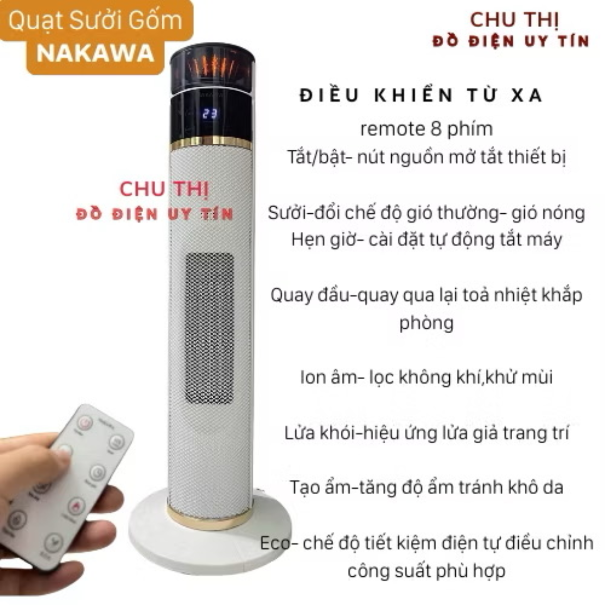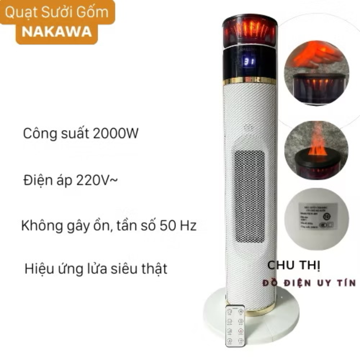 Quạt Sưởi Gốm Nakawa PTC Ceramic | Hiệu Ứng Lửa Khói 2000W