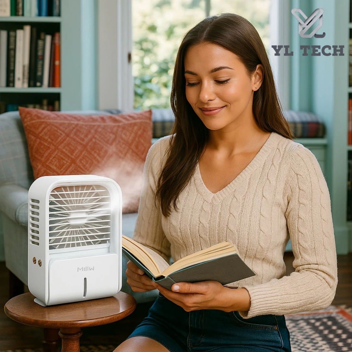 1. Công nghệ phun sương siêu mịn Nano MIIIW LJQ-122 sử dụng công nghệ siêu âm hiện đại để tạo ra lớp sương siêu mịn, nhanh chóng hòa tan vào không khí. Luồng sương này giúp giảm nhiệt độ phòng nhanh hơn so với quạt thông thường mà không gây cảm giác ướt át hay khó chịu, cực kỳ phù hợp khi đặt trên bàn làm việc hoặc trong phòng ngủ.