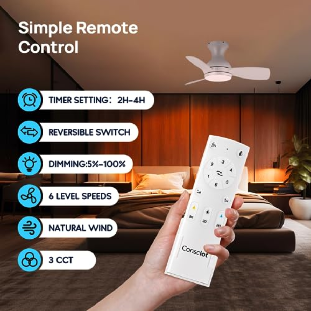 Quạt trần Consciot Sovia là sự kết hợp hoàn hảo giữa công nghệ làm mát hiện đại và thiết kế sang trọng. Với tính năng đảo chiều gió thông minh (mát mẻ mùa hè, lưu thông khí mùa đông) cùng hệ thống đèn LED đa sắc và điều khiển từ xa tiện lợi, sản phẩm không chỉ mang lại làn gió tự nhiên mà còn là điểm nhấn thẩm mỹ đẳng cấp cho phòng khách, phòng ngủ hoặc căn hộ hiện đại.