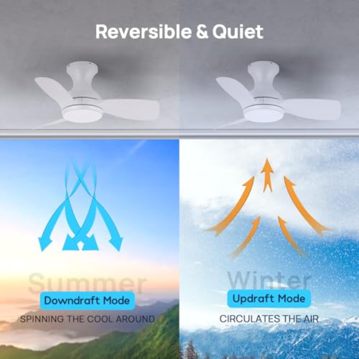 • Chế độ mùa đông: Quay thuận chiều kim đồng hồ để đẩy khí ấm từ trần nhà xuống, giúp lưu thông không khí mà không gây lạnh.