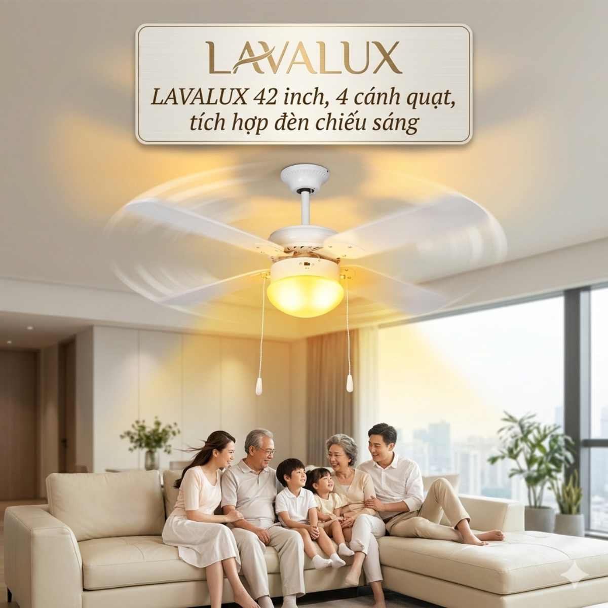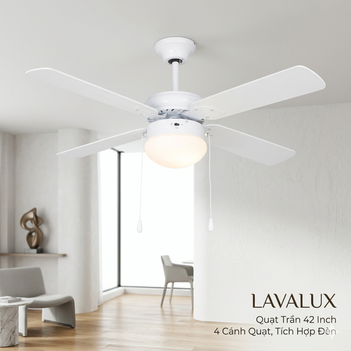 Quạt Trần Lavalux 42 Inch | 4 Cánh Quạt Tích Hợp Đèn Chiếu Sáng | Động Cơ AC Ổn Định