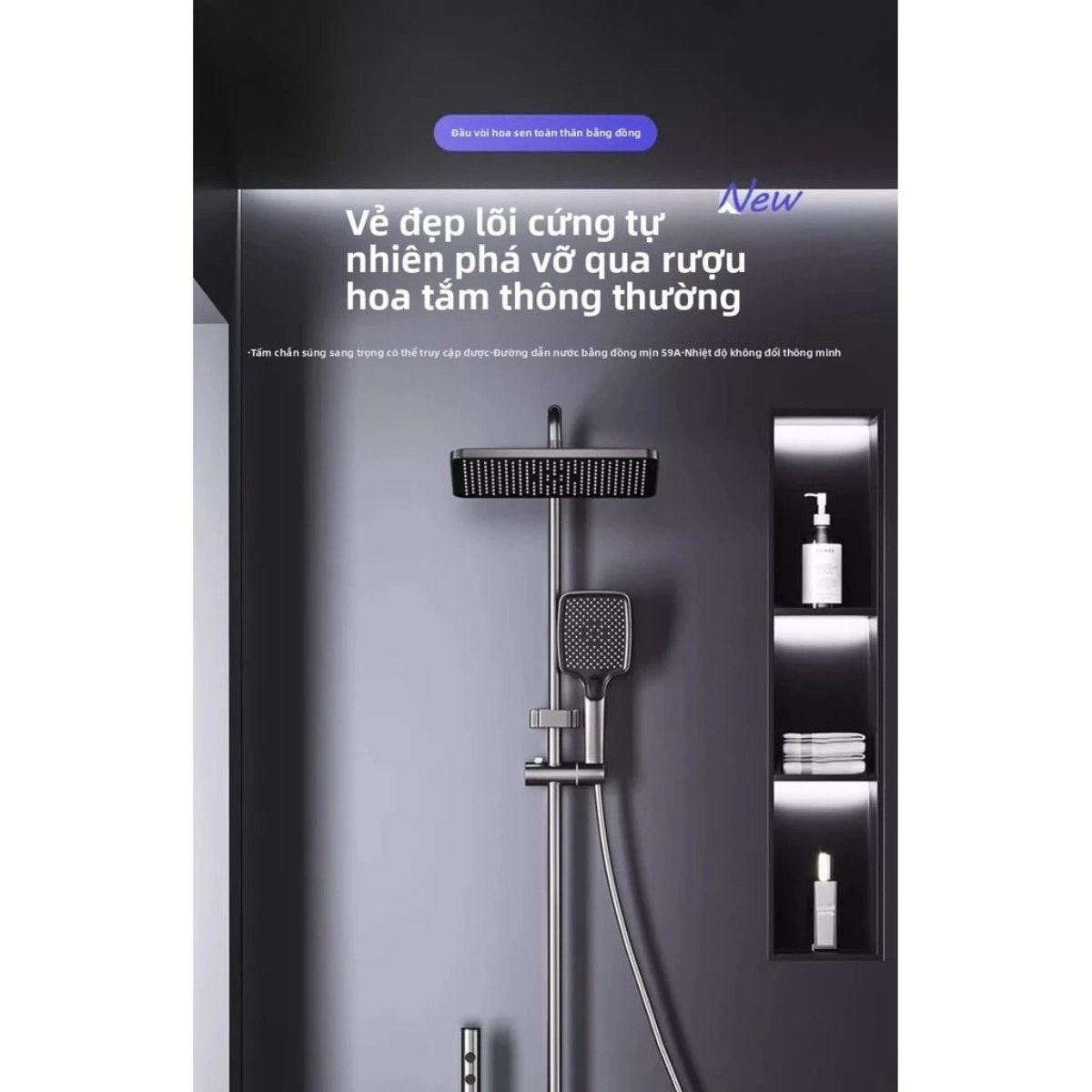 • Bát sen & Tay sen: Sử dụng nhựa ABS chịu nhiệt, các đầu phun silicone mềm mại giúp dễ dàng vệ sinh cặn vôi và tạo tia nước mạnh mẽ nhưng vẫn êm ái.