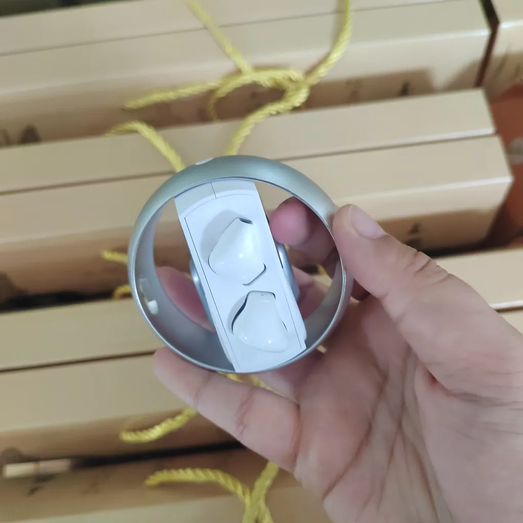 Vỏ hộp sạc được thiết kế cơ chế xoay 360 độ đầy cảm hứng. Không chỉ là nơi tiếp năng lượng, thao tác xoay mượt mà còn giúp người dùng giải tỏa căng thẳng (stress) như một chiếc fidget spinner cao cấp.