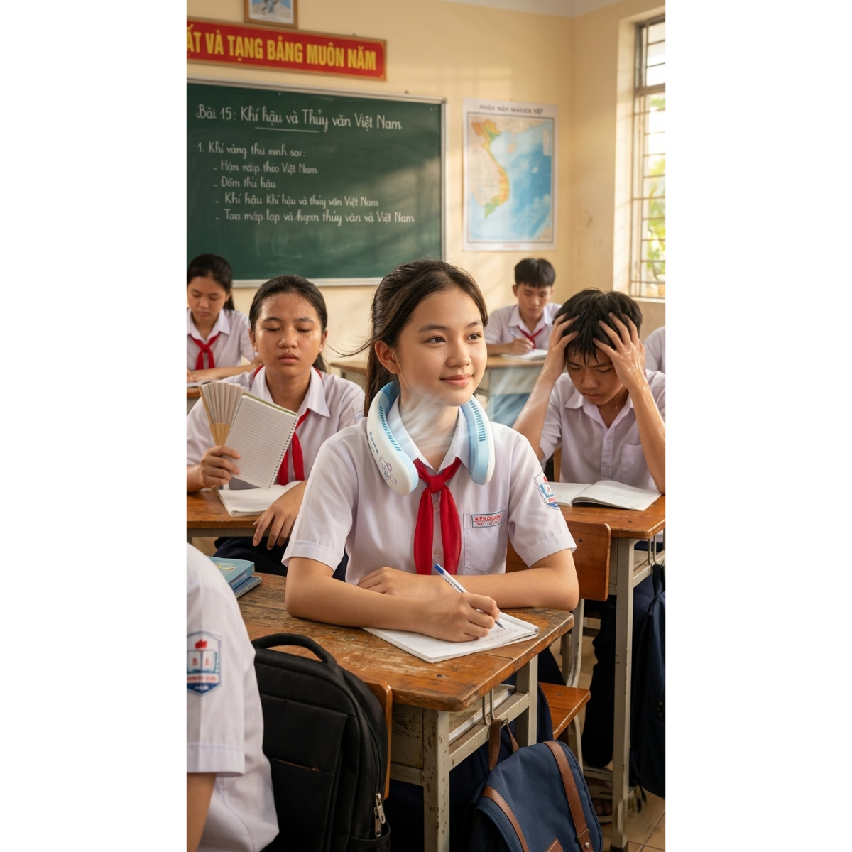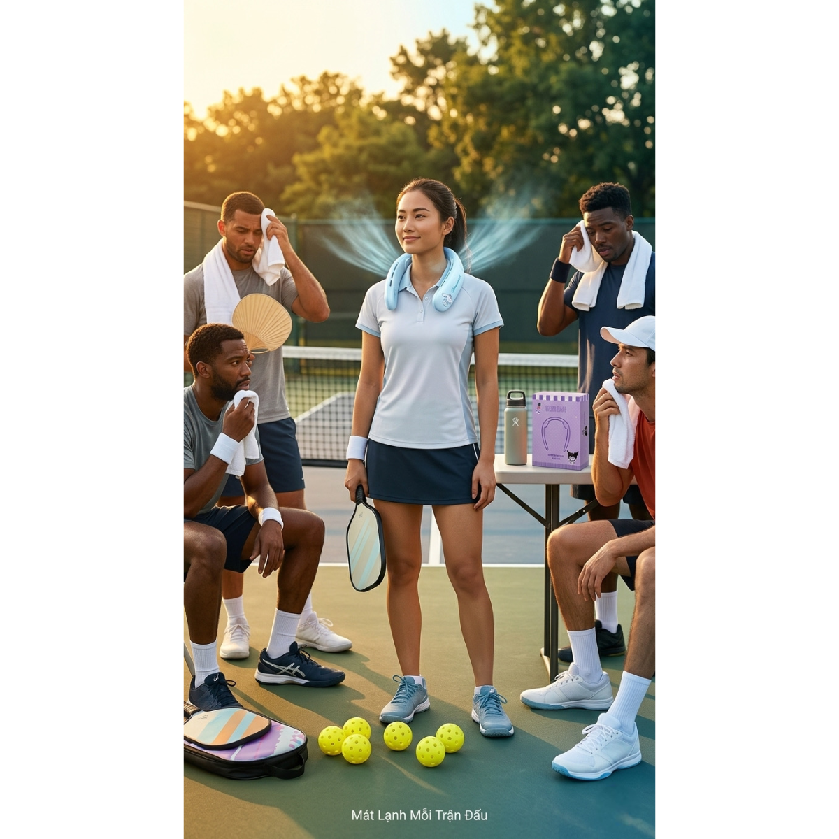 • Cơ chế: Làm mát 360 độ rảnh tay, không gây vướng víu, an toàn cho tóc dài.