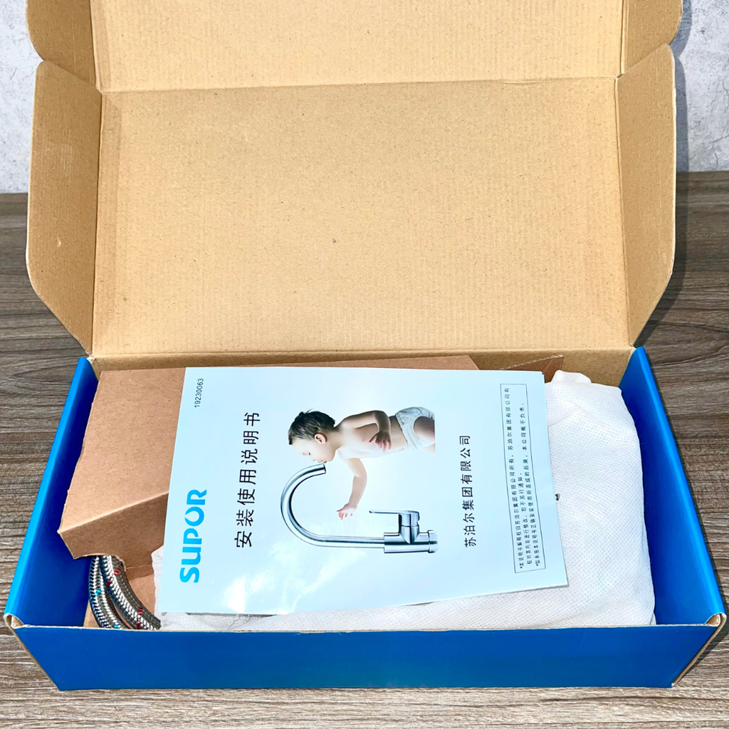 2. Chất liệu Inox 304 tiêu chuẩn quốc tế Khác với các dòng vòi đồng mạ chrome thông thường, vòi Supor được đúc từ Inox 304 cao cấp. Đây là chất liệu có khả năng chống ăn mòn cực cao, không chứa chì (Lead-free), đảm bảo nguồn nước luôn tinh khiết và bảo vệ sức khỏe cho cả gia đình. Bề mặt vòi được đánh bóng mờ đặc trưng, chống bám bẩn và không để lại dấu vân tay.