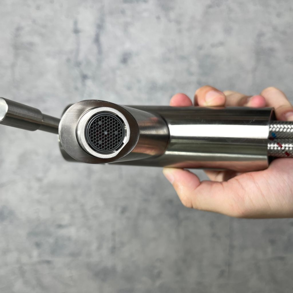 3. Công nghệ lưới lọc tạo bọt chống bắn Đầu vòi được trang bị hệ thống lưới lọc đa lớp giúp sục khí vào dòng nước, tạo ra dòng chảy êm ái, nhẹ nhàng và không gây bắn tóe. Công nghệ này không chỉ mang lại cảm giác dễ chịu khi sử dụng mà còn giúp tiết kiệm nước hiệu quả lên đến 30%.